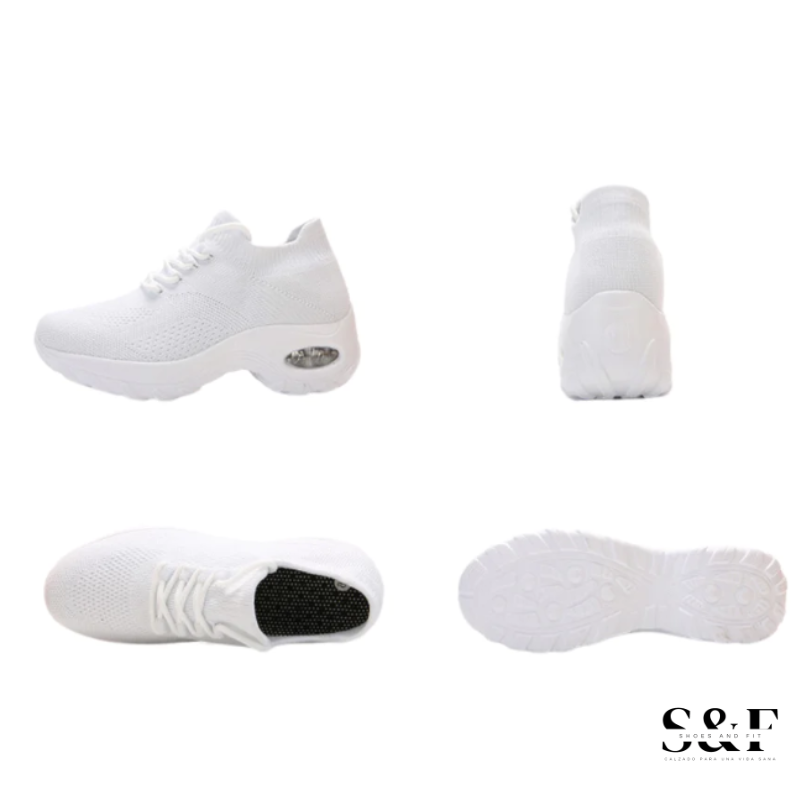 L'effet élastique de la semelle réduit la tension et la douleur dans les articulations des pieds, les chevilles et les genoux, tandis que le matériau antidérapant garantit une marche sur n'importe quelle surface avec une prise sûre.