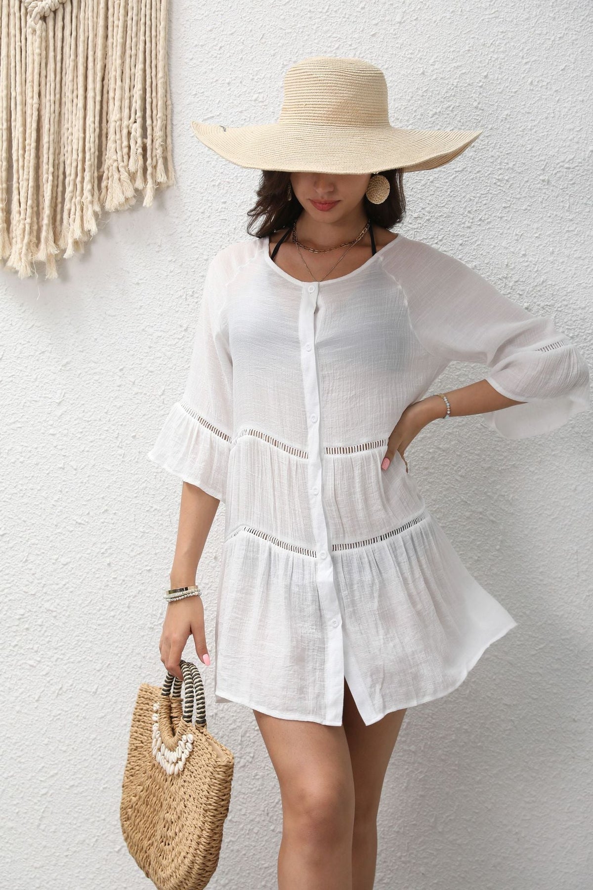 Cette robe courte en dentelle est une pièce légère et aérée, idéale pour les femmes qui souhaitent adopter un style estival à la fois espiègle et élégant. Confectionnée dans un mélange doux de coton et de polyester, elle présente une silhouette évasée et des manches cloche, pour un équilibre parfait entre confort et charme. Les détails ajourés en dentelle apportent une touche de séduction, parfaite pour les journées à la plage, les séjours en bord de mer ou les brunchs décontractés en plein air.